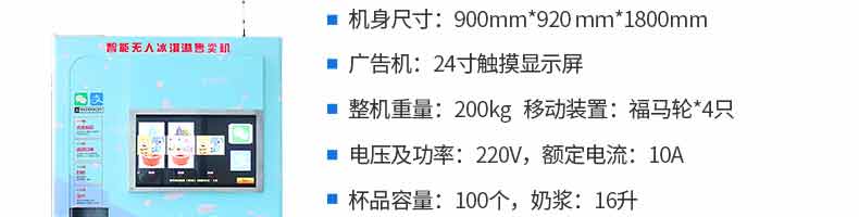 无人售货冰淇淋机, 人工成本越来越高,无人店、无人售卖机必将是一个趋势。简单而又重复的劳动(售卖)必将被智能无人替代。无人售货自助冰淇淋机支持多种支付方式,支持远程监管功能,支持预冷保鲜,支持多种口味混合,自动清洗少料报警。无需人工、场地无限制。